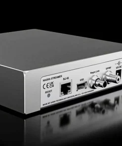 Une alimentation externe est ajoutée et améliore la qualité sonore. Le Streamer relie les sources musicales modernes avec des configurations de haute qualité, élargissant les possibilités d’écoute avec des flux numériques et des fichiers haute résolution.
